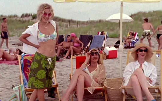 The pose, the sunglasses, the SHORTS. One of Carrie’s best looks. My perma-summer inspo. Photo: Screenshot.