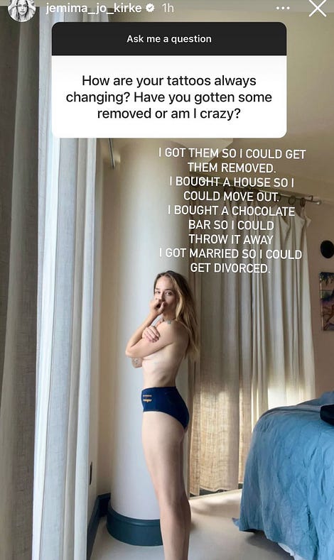 “I Am Not The Villain” - Lizzo A handful of other former Lizzo collaborators posted messages in support of the plaintiffs. The filmmaker Sophia Nahli Allison, who was hired to direct a documentary about Lizzo, said she quit after two weeks because of the star’s behavior. “I was treated with such disrespect by her,” Allison wrote. “I witnessed how arrogant, self-centered, and unkind she is.” Quinn Wilson, Lizzo’s former creative director, posted something similar: “I haven’t been a part of that world for around three years, for a reason. I very much applaud the dancers courage to bring this to light. and I grieve parts of my own experience.” Has Beyoncé already made her mind up? She repeated Erykah Badu’s name in place of Lizzo’s while performing the remix of “Break My Soul” during a Renaissance tour performance. On Thursday, Lizzo released a statement responding to the allegations. “I am not the villain that people and the media have portrayed me to be these last few days,” she wrote. “I am very open with my sexuality and expressing myself but I cannot accept or allow people to use that openness to make me out to be something I am not.” I did a story on celebrity apologies for Vice a few summers ago, and the biggest takeaway from my reporting was that most celebrity Notes app statements are written by talent and not vetted by a professional. That looks to be the case with this one — this statement is too long and incoherent, even for “apologies” that legally need to avoid liability. Saying you are not the villain is something a villain would say! Merriam Webster Pageviews For Myopic Going 📈 “I think it is a reductive negotiating tactic, and I find the entire thing incredibly frustrating. And I think the thinking as it pertains to shows like the show that I’m on, that premiered last night, I think it’s myopic,” Amell told an audience at something called GalaxyCon. My favorite part of this is the subtle reminder that he’s on a show and that show premiered last night. On Wednesday, after Amell went viral for being the only actor to support the AMPTP, he admitted that he has no idea what he’s talking about. “What I said: ‘I think that it is a reductive negotiating tactic and I find the entire thing incredibly frustrating.’ In full context: I’m an actor and I was speaking extemporaneously for over an hour. I emote, but I certainly don’t think these issues are simple.” I’m an actor but I spoke for an hour without a script so what do you expect really is a hilarious sentence and a ringing endorsement for the WGA! I have not really been in a rush to see Oppenheimer, but considering the fact that we are not one nation under God but one nation under men using Tom Ford bronzer, my ass will be in an IMAX seat at 8:40 a.m. Tuesday morning. That’s all this week! Thank you for reading. This week I rewatched a season and a half of Girls and Jemima Kirke is making a strong case for me to continue: Bye! Thank you for being a free subscriber to Hung Up! If you like it, I hope you’ll consider upgrading to a paid subscription for even more of it. You can also find me on Instagram here, on Twitter here, my Tiktok, and I’m also on Bluesky. And if you share on social, please add a link :) |