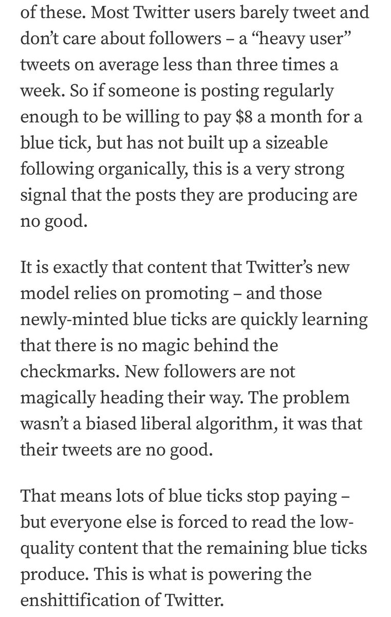 James Ball sums up Twitter’s death spiral problem. Tap through to read it in full: |