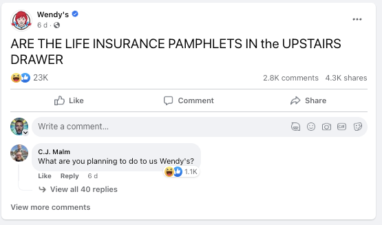 “What makes this great social media campaign even better is that Wendy's has really committed to this persona—they've kept this up for years. Now, THAT'S what I call being dedicated to your art!” |