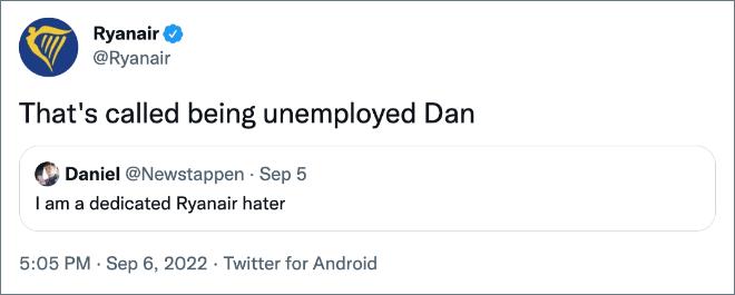 …and speaking of unhinged, Ryanair is perhaps the wildest brand social persona of all. I got a question in at the end of this excellent podcast 👇 |