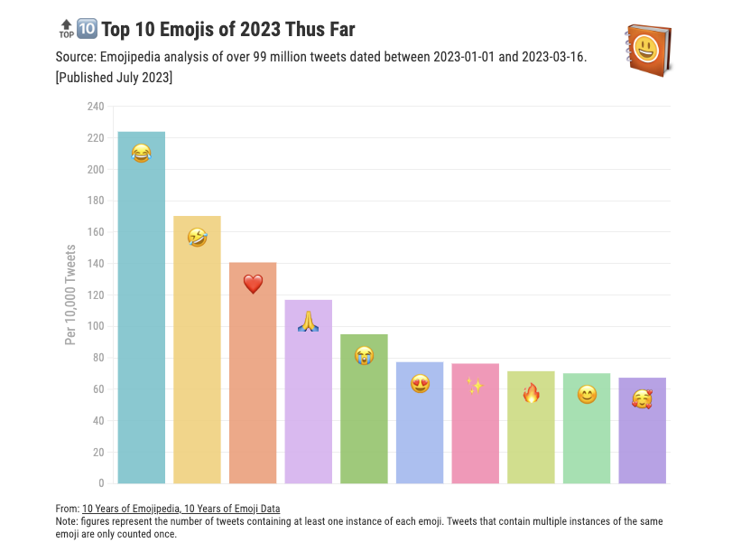 Love them or hate them, 😂 and 🤣 top 2023’s emoji usage chart so far: |