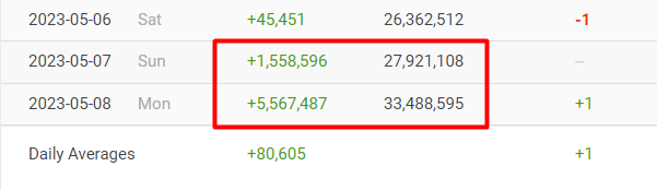 MrBeast's Instagram is BLOWING UP 🔥 The account has gained more than 7 Million followers in the last 24 hours! Going from ~26.3M just two days ago to 33.5M as of now. This sudden burst of growth comes after a birthday giveaway on a post with 12.4M likes and 13.6M comments https://t.co/J7whGCiIPn |   | | | May 8, 2023 | | |  | | | 549 Likes 25 Retweets 32 Replies |